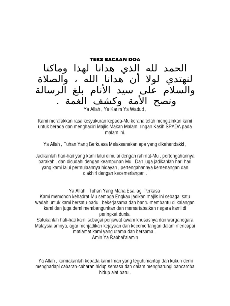 Doa Selepas Jamuan Makan Doa Majlis Jamuan Makan Malam Bernas 12 10 2010 Ya Allah Kami Melahirkan Pdf Document