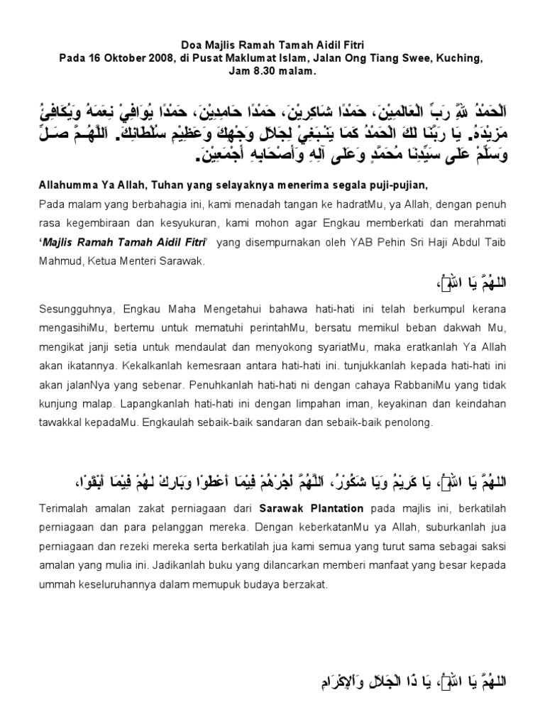 Doa Majlis Ramah Tamah Aidil Fitri