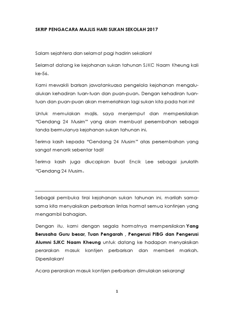 Doc Teks Pengacara Perasmian Dan Penutupan Kejohanan Balapan Dan Padang Sk Ulu Sipitang Tahun 2014 Teks Pengacara Majlis Kechik Nakal Academia Edu