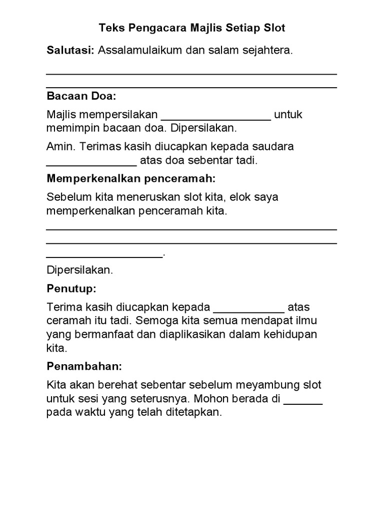 Teks Pengacara Masjlis Sambutan Ceramah Agama