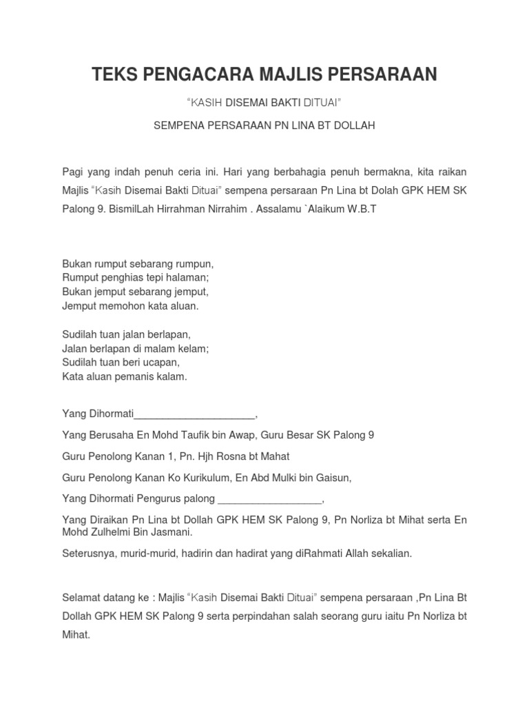 Doc Teks Pengacara Majlis Majlis Perpisahan Jan 2018 Majidah Najihah Academia Edu