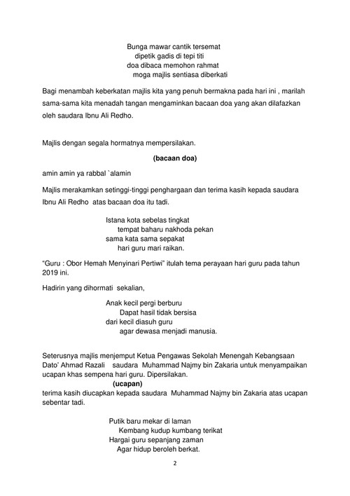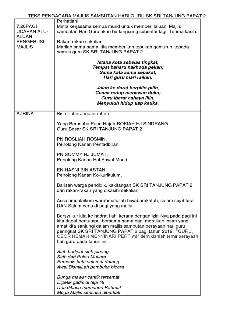 Teks Pengacara Majlis Sambutan Hari Guru 2019 By Rohana Ablatif Flipsnack