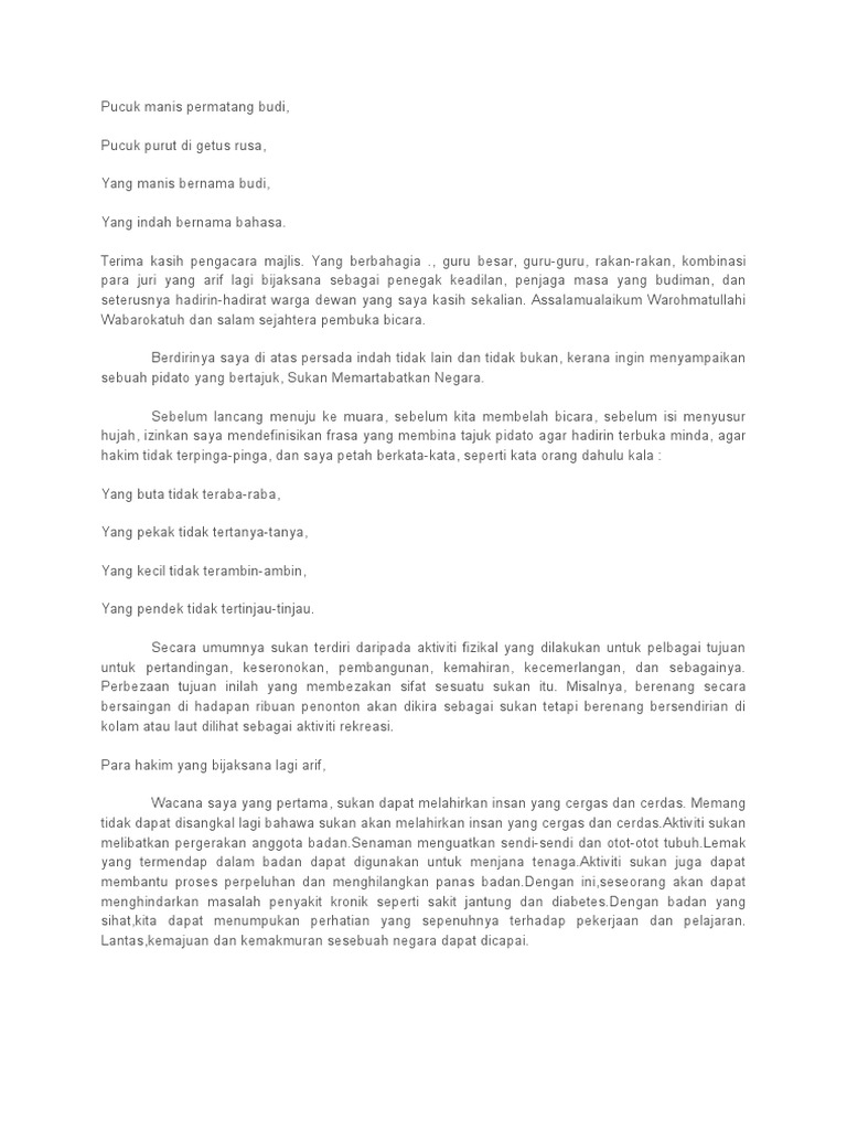 Skrip Pidato Contoh Pidato Bahasa Melayu