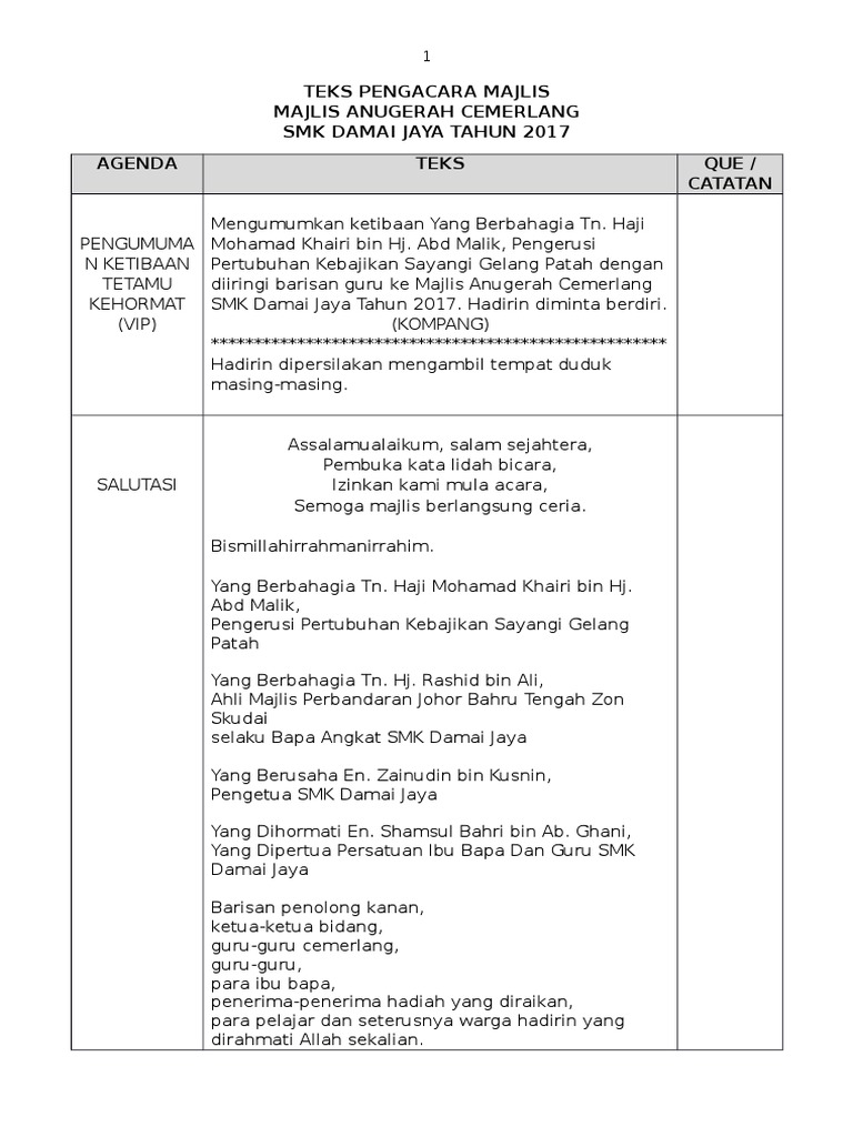 Teks Ucapan Perasmi Majlis Anugerah Cemerlang Dan Apresiasi Tahun 6 Sk Taman Johor Jaya 5 Pages 1 4 Text Version Anyflip