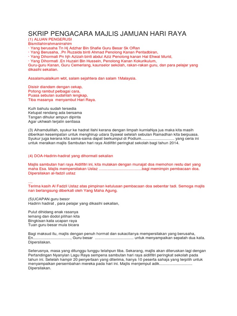 Doc Skrip Pengacara Majlis Jamuan Hari Raya Zaman Dullah Academia Edu