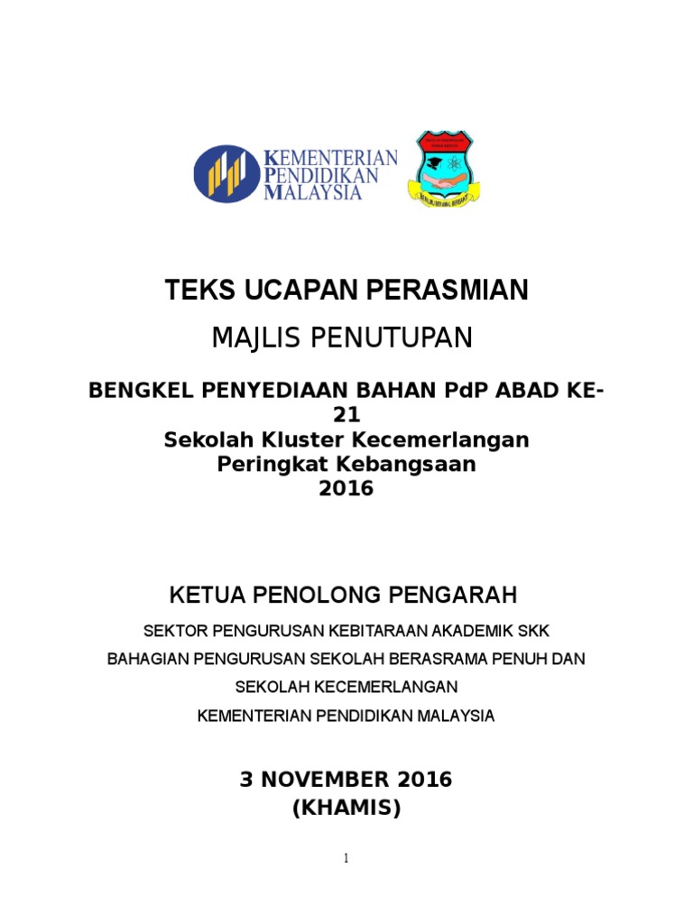 Teks Ucapan Penutup Bengkel Pemikiran Pdf Document