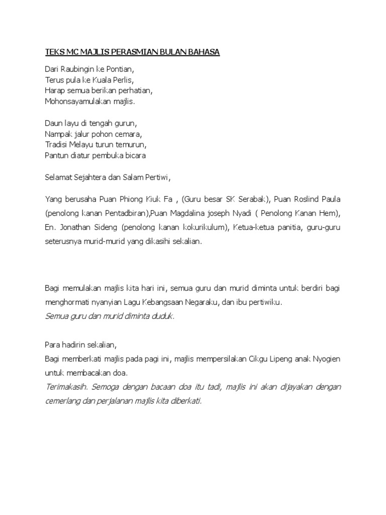 Teks Mc Majlis Perasmian Bulan Bahasa