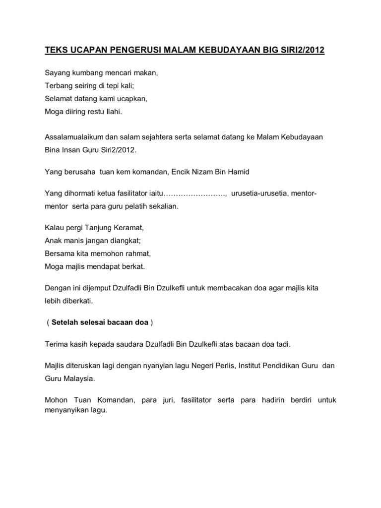 Teks Ucapan Pengacara Malam Kebudayaan Big Siri1