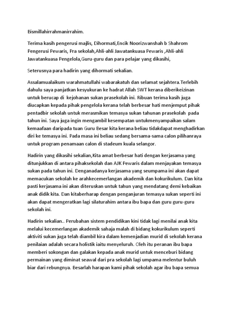 Teks Ucapan Perasmian Sukan Tahunan Sekolah Doc Download Documents