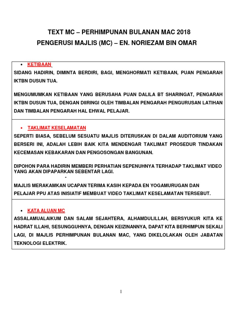 Teks Mc Perhimpunan Mac 2018