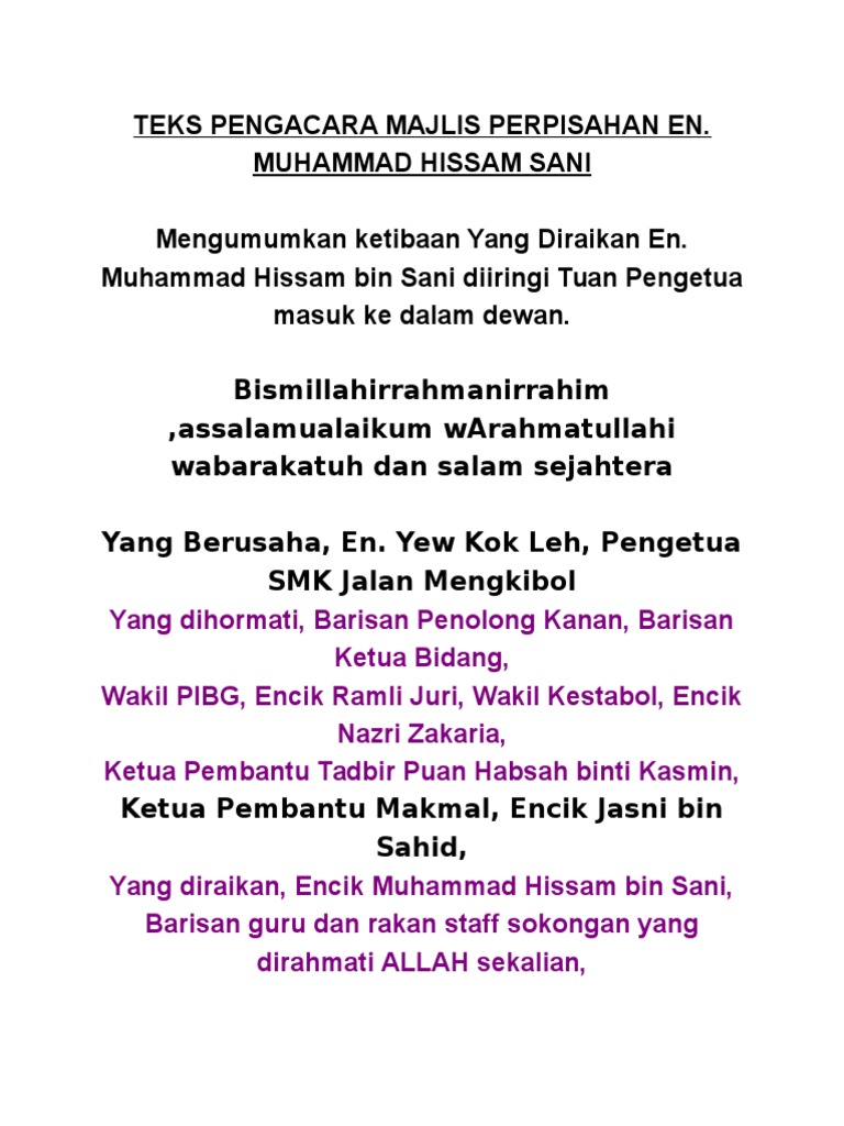 Contoh Teks Majlis Perpisahan Pengetua Docx