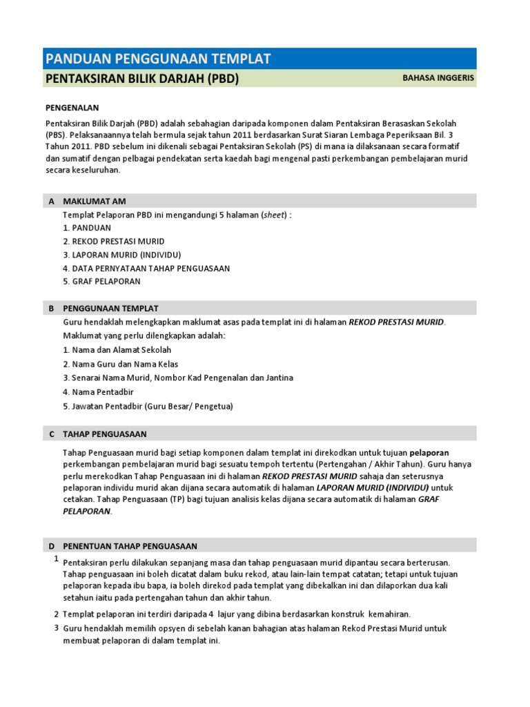 Templat Pelaporan Pbd Tahap 1 Surat Pentaksiran Bilik Darjah P Pinang Facebook