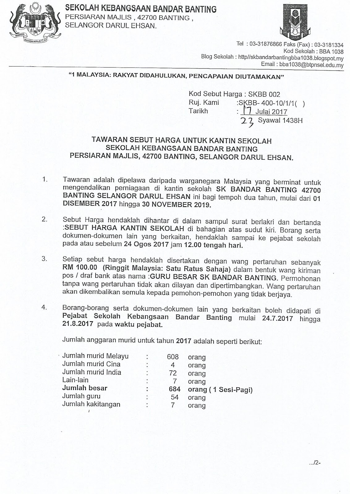 Sk Bandar Banting Tawaran Sebutharga Kantin Sekolah