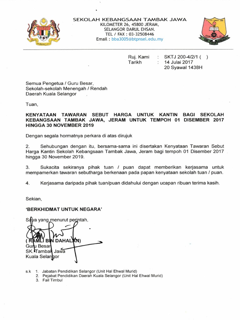 Surat Rasmi Permohonan Tender Kantin Surat Rasmi D