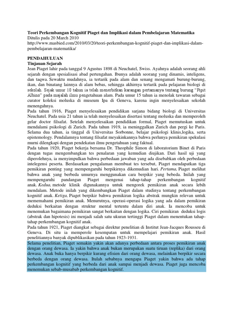 Pdf 7 Teori Perkembangan Kognitif Dari Jean Piaget Rendi Atmaja Academia Edu