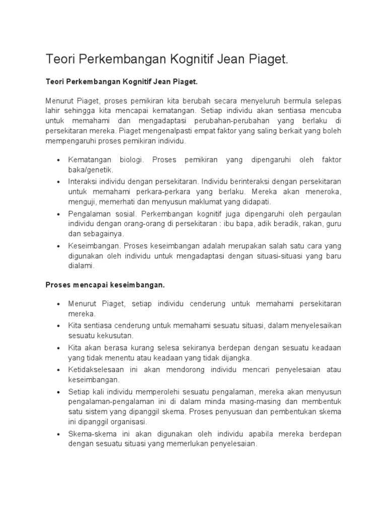 Piaget Docx Teori Perkembangan Jean Piaget Bab I Pendahuluan A Latar Belakang Masalah Dalam Konteks Psikologi Pembelajaran Pengertian Tentang Belajar Course Hero