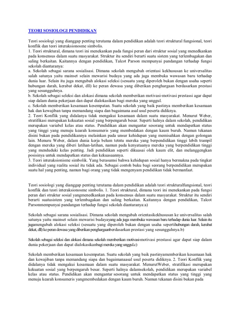Teori Teori Sosiologi Dan Implikasinya Dalam Pendidikan Mellyhandayanicyrus