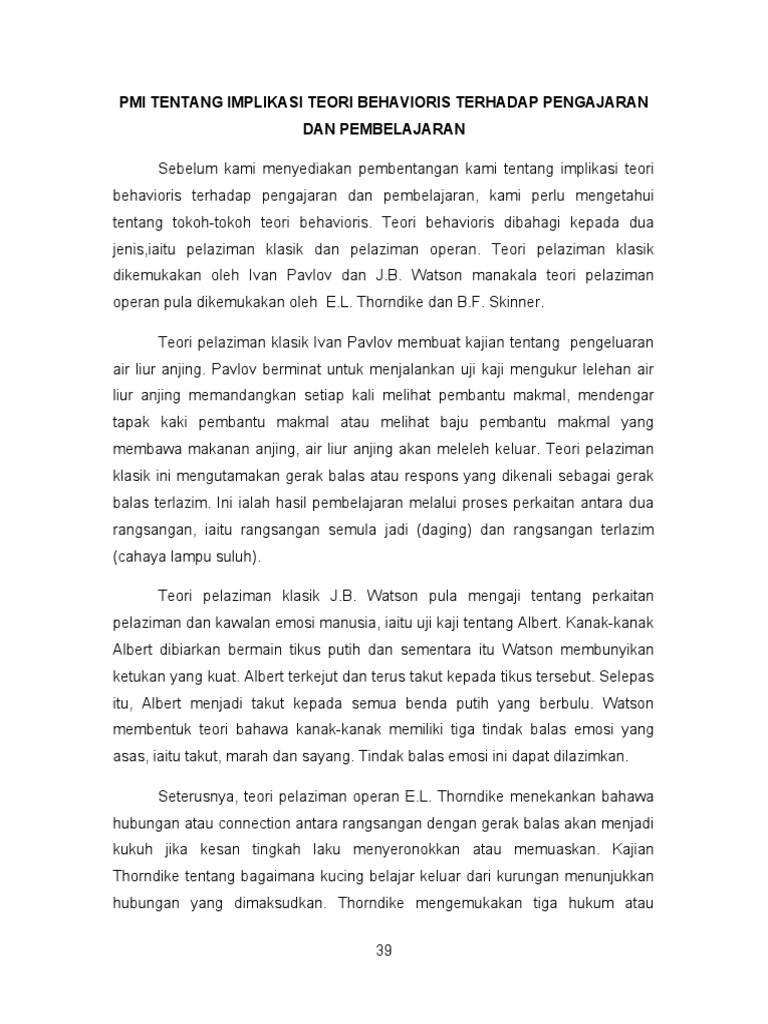 Pmi Tentang Implikasi Teori Behavior Is Terhadap Pengajaran Dan Pembelajaran