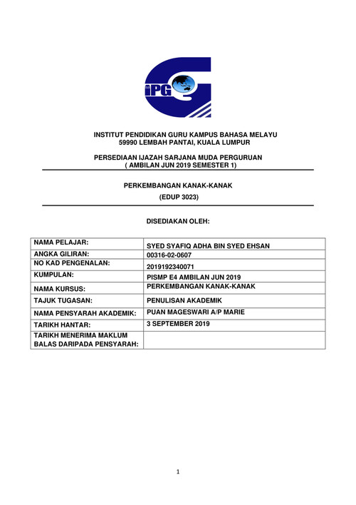 Doc Penulisan Refleksi Pra 3107 Ismi Ishak Academia Edu