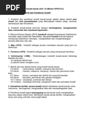 Doc Ekspresi Kreativiti Kanak Kanak Unit 1 6 Modul Upsi Pjj Unit 1 Teori Kreativiti Dan Pemikiran Kreatif Ting Ivy Academia Edu