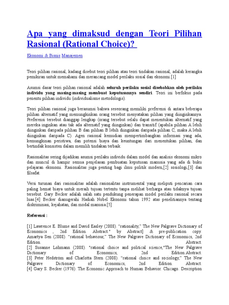 Teori Pilihan Rasional Ensiklo Com