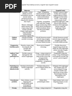 Perbandingan Teori Behavior Kognitif Kognitif Sosial