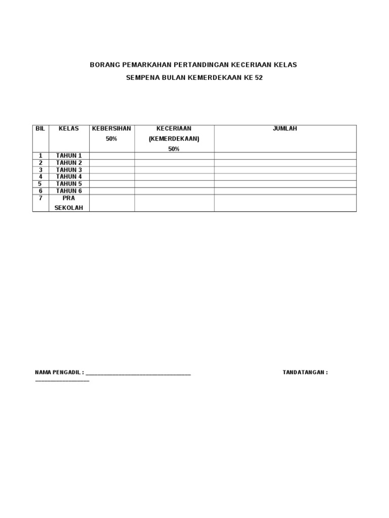 Borang Pemarkahan Pertandingan Keceriaan Kelas