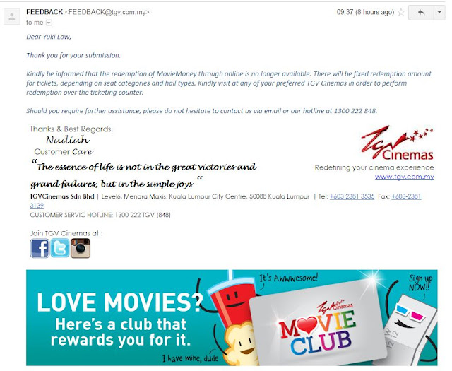 13 point can redeem 1 movie tickets and even money spend for drinks and popcorn also count. How much movie money i need to have to redeem 1 movie ticket. Tgv cinemas mobile app. The redemption can be done between 10am 10pm at the concierge of sunway putra mall and at the carpark office in basement 1 of sunway putra mall after 10pm.