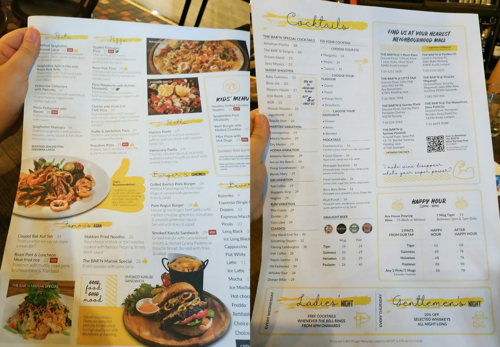 Food Menu Picture Of The Bar N 1 Mont Kiara Kuala Lumpur Tripadvisor