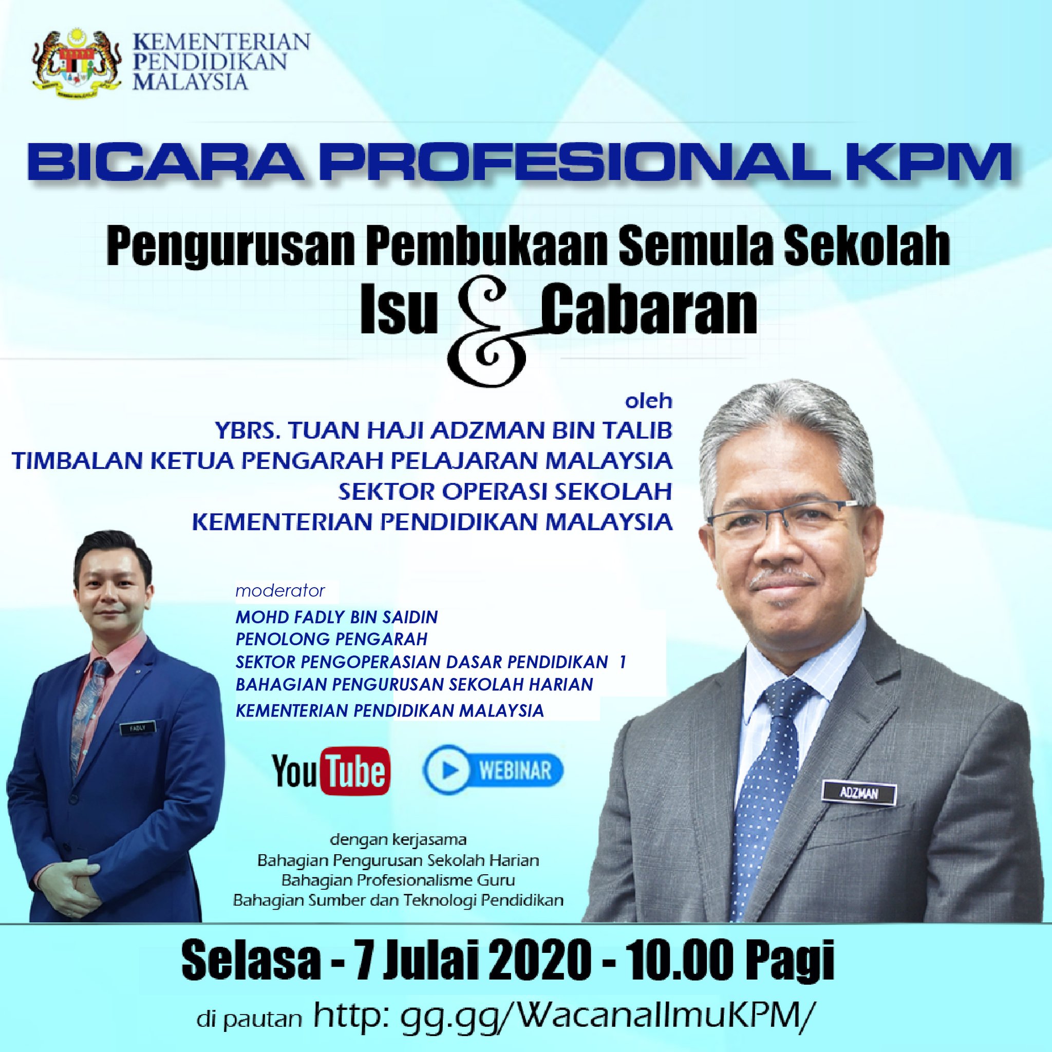 Kpm On Twitter Bicara Profesional Kpm Oleh Ybrs Tuan Haji Adzman Bin Talib Timbalan Ketua Pengarah Pelajaran Malaysia Topik Pengurusan Pembukaan Semula Sekolah Isu Dan Cabaran Selasa 7 Julai 2020 10 00