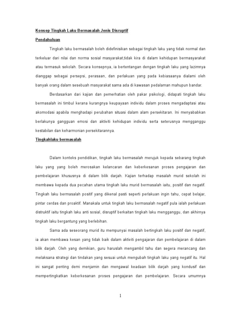 Tingkah Laku Bermasalah Disruktif