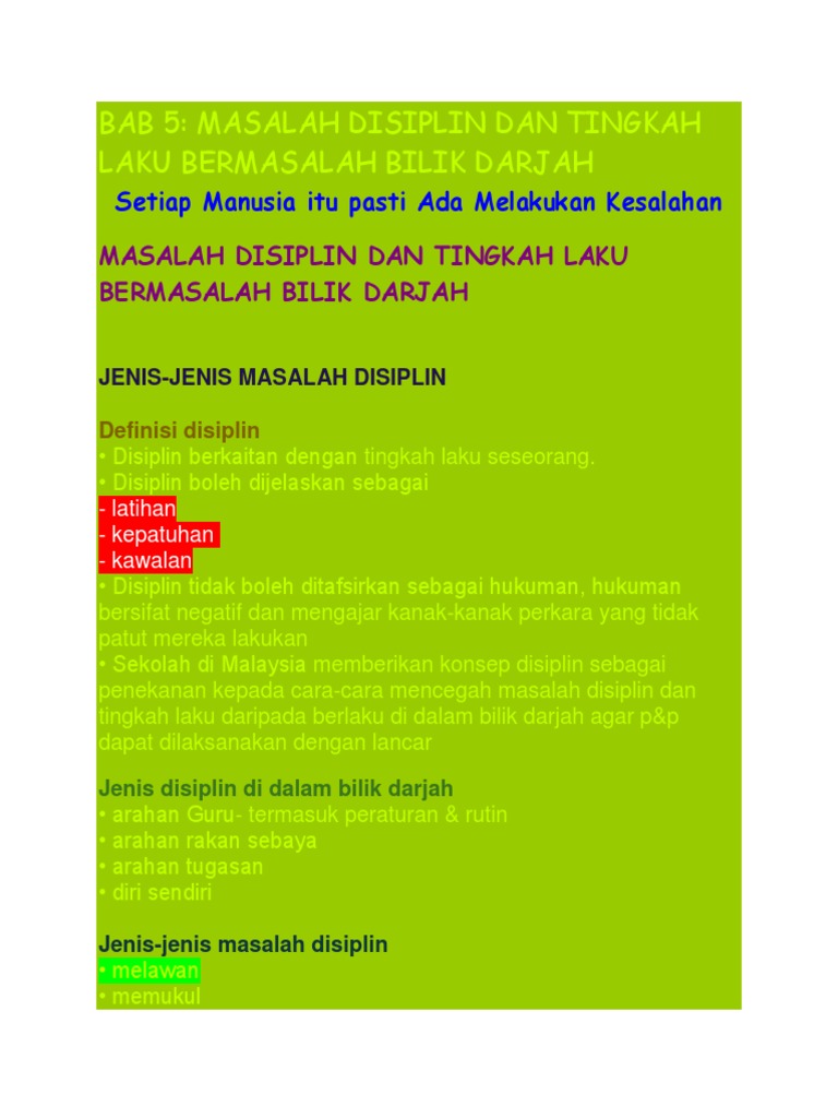 Bab 5 Sebab Sebab Berlaku Masalah Disiplin Dan Tingkah Laku Bermasalah