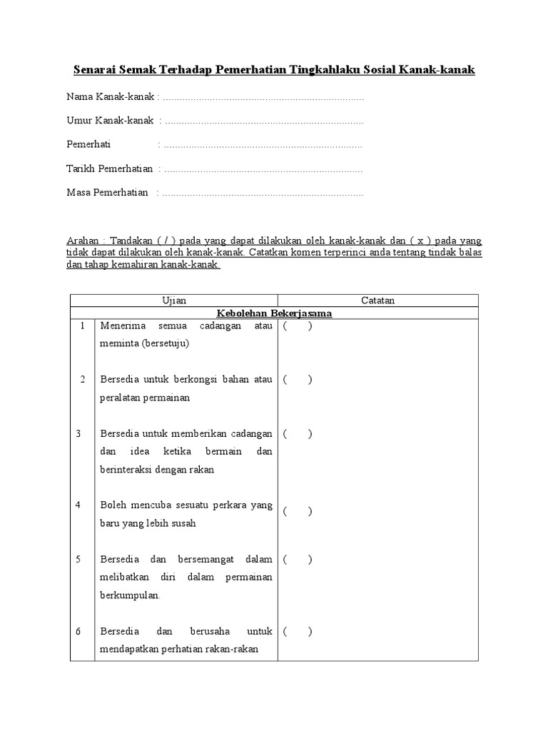 Senarai Semak Terhadap Pemerhatian Tingkahlaku Sosial Kanak