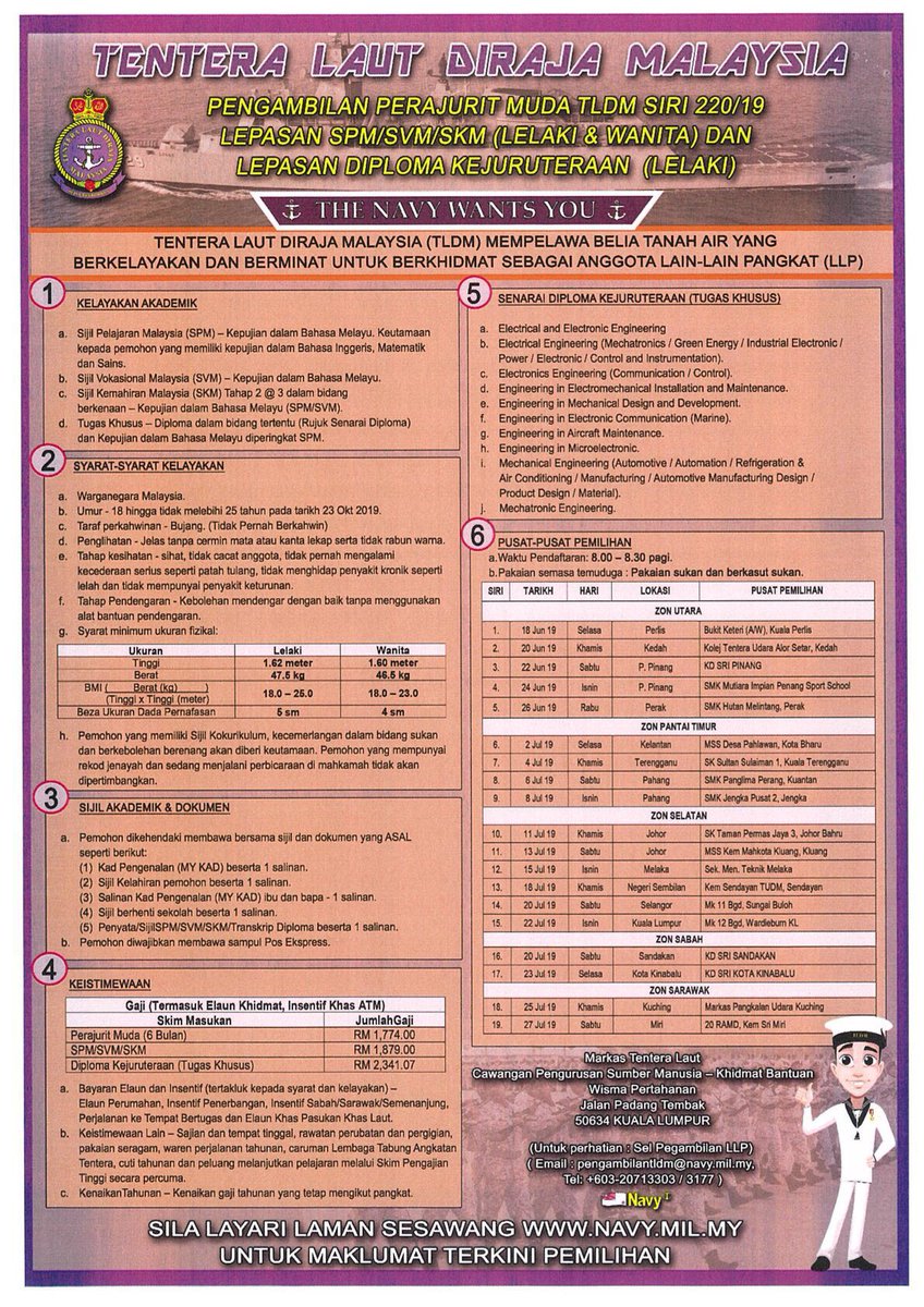 Pengambilan Perajurit Muda Tldm Siri 220 19 Lepasan Spm Svm Skm Lelaki Wanita Dan Lepasan Diploma Kejuruteraan Lelaki Jawatan Kosong Kerajaan 2020 Terkini