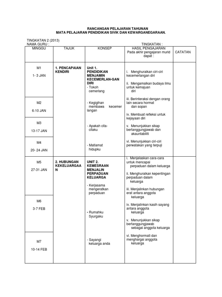 Doc Rancangan Tahunan Pendidikan Sivik Dan Kewarganegaraan Tingkatan 1 Mingg U Tema Tajuk Huraian Pelajaran Cadangan Aktiviti Tema 1 Pencapaian Kendiri Unit 1 Identiti Diri 1a Diariku Hock C Ong Academia Edu