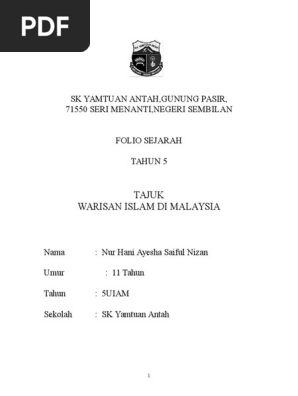 Contoh Folio Sejarah Tahun 4 Frasmi