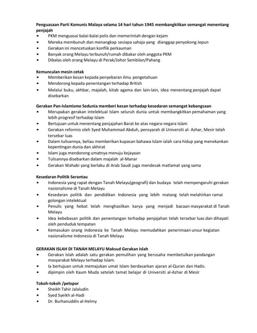 Nota Sejarah Tingkatan 5 Bab 2 Nasionalisme Di Malaysia Sehingga Perang Dunia Kedua