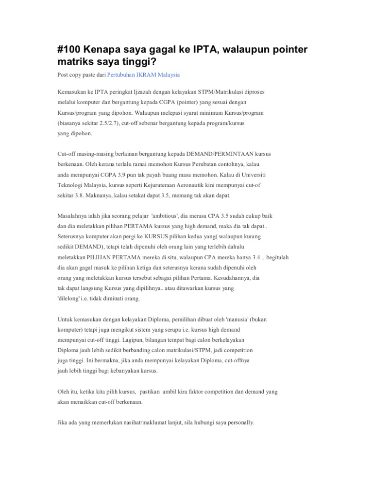100 Kenapa Saya Gagal Ke Ipta