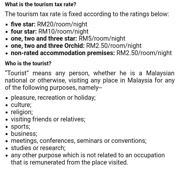 Tourism tax in malaysia. The ttx has also been set at a flat rate of rm10 per night per room rented. Royal malaysian customs department level 4 block a menara tulus no 22 persiaran perdana precinct 3 62100 putrajaya federal territory malaysia https. So here s what you need to know about the tax. The responsibility for collecting the tax will be borne by the operators of the accommodation premises.