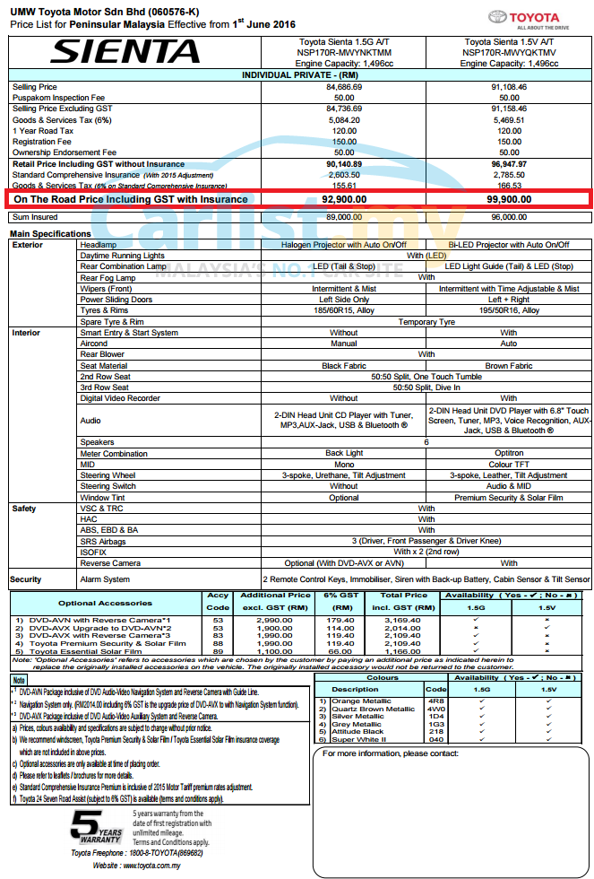 2016 Toyota Sienta Pricing Released From Rm92 900 Paultan Org