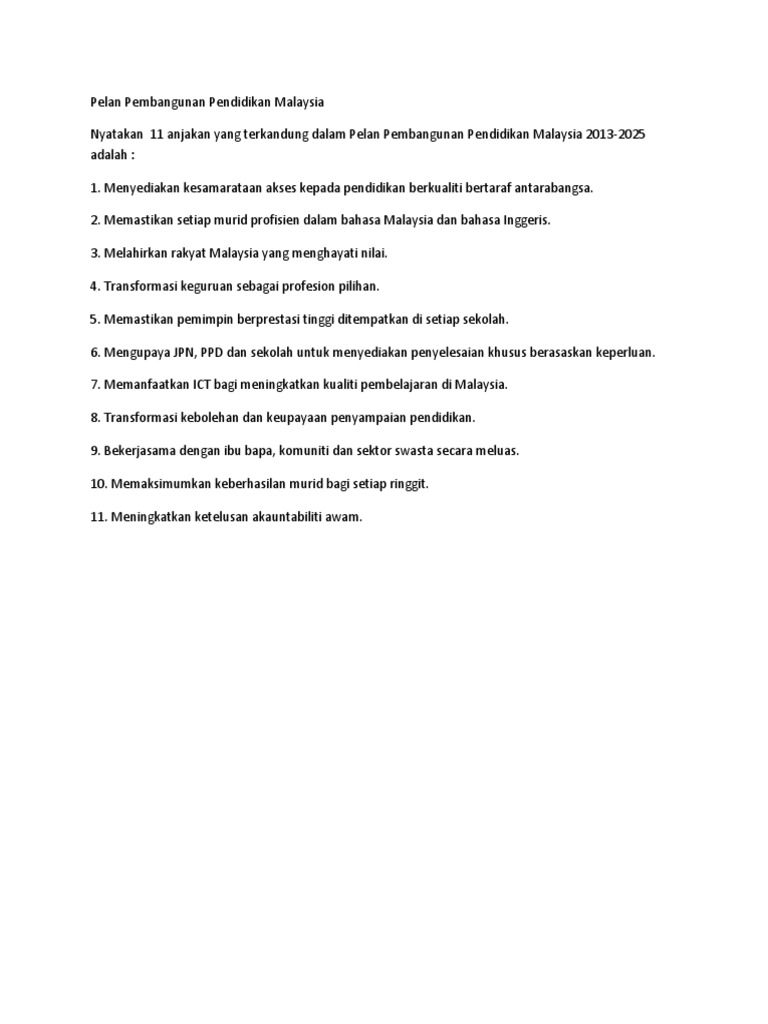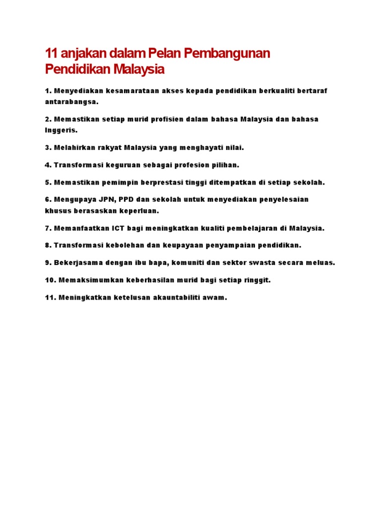 11 Anjakan Dalam Pelan Pembangunan Pendidikan Malaysia Docx Document