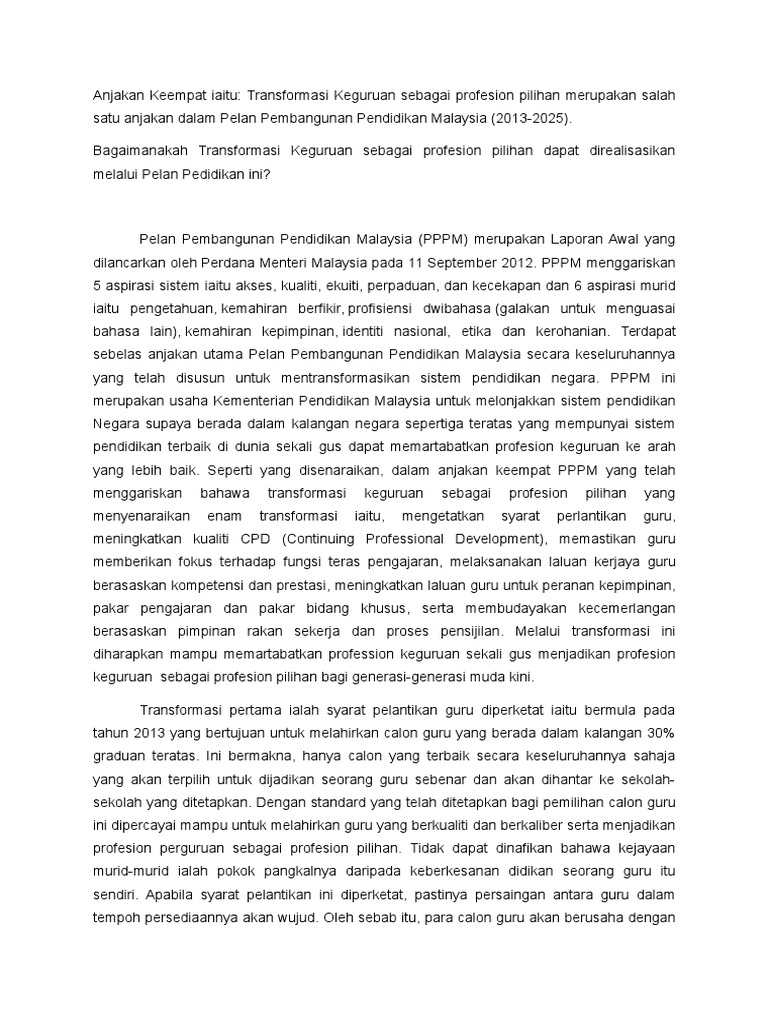 259560543 Bagaimanakah Transformasi Keguruan Sebagai Profesion Pilihan Dapat Direalisasikan Menerusi Pelan Pendidikan