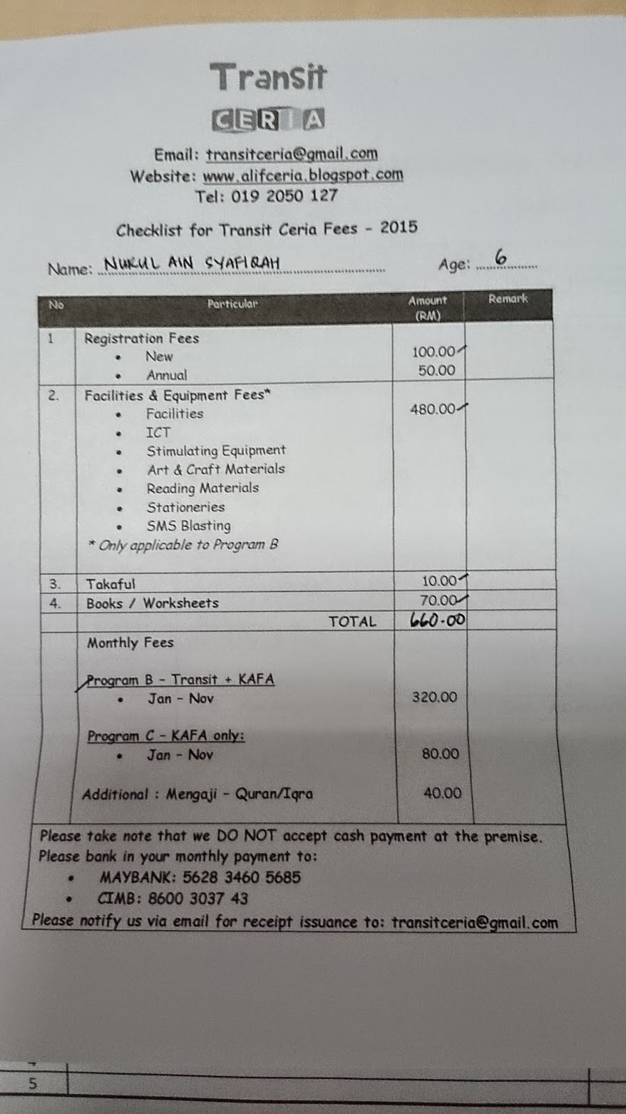 A K U D I A K A M U C Pendaftaran Transit Ceria 2015
