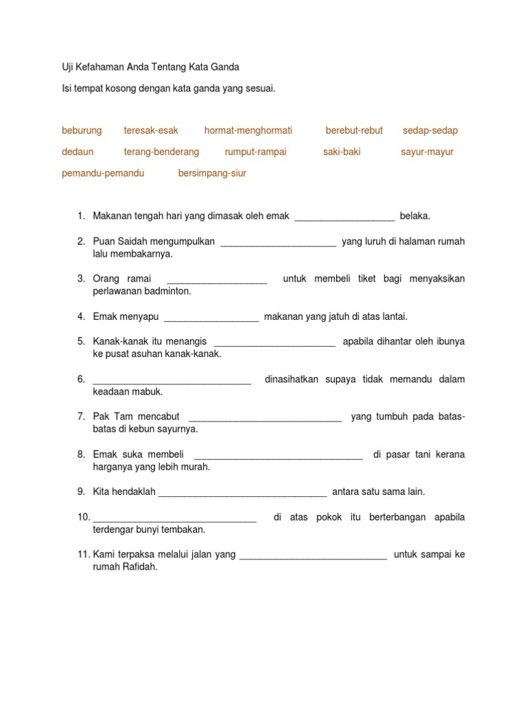 Kata Ganda Penuh Tahun 2 Pdf Document