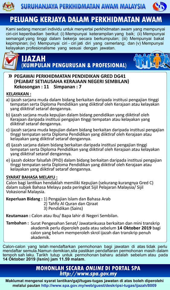 Jawatan Kosong Pegawai Perkhidmatan Pendidikan Gred Dg41 Ewarta Mara