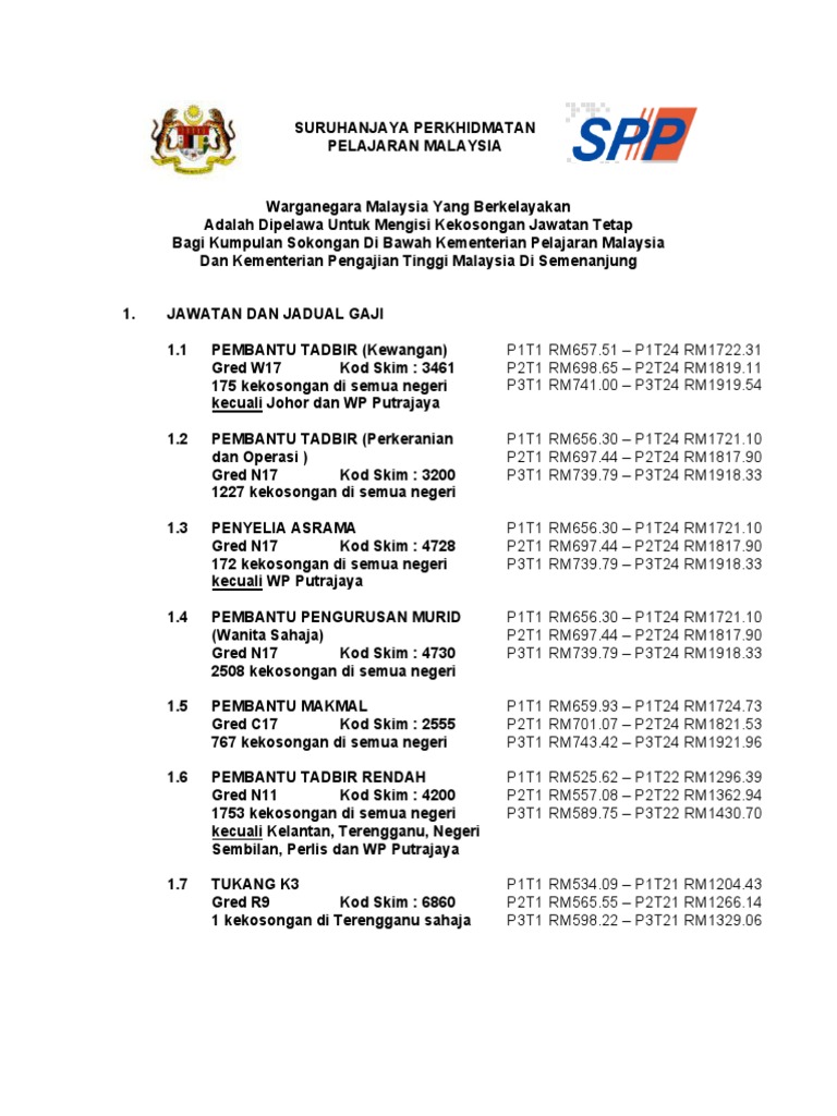 Suruhanjaya Perkhidmatan Pelajaran Xa Yimg Com Kq Groups 18762877 1076905356 Name Iklan Aks Jawatan Dan Jadual Gaji 1 7 Pembantu Tadbir Rendah Berkenaan Seperti Tugas Tugas Pdf Document