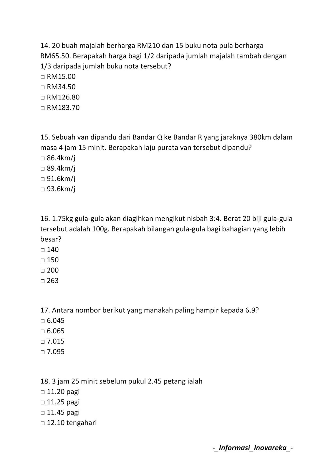 Contoh Soalan Daya Menyelesaikan Masalah Pembantu Operasi N11 Spa