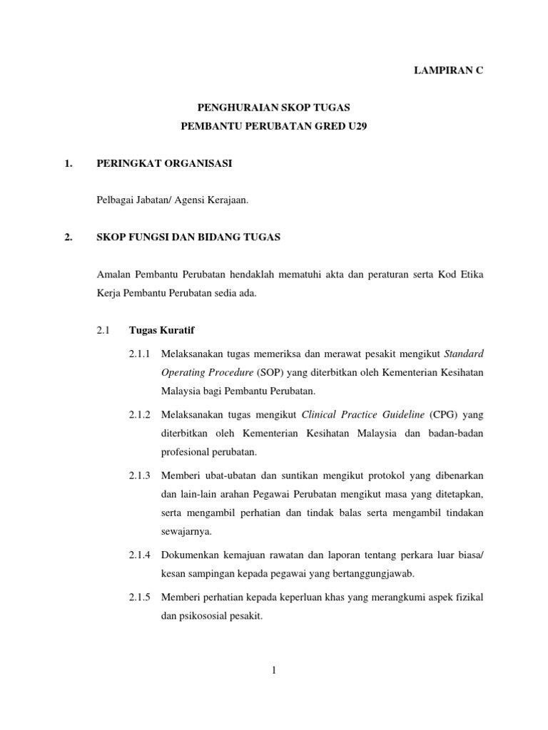 1 Penghuraian Kerja Perkhidmatan Penolong Pegawai Pdf Document