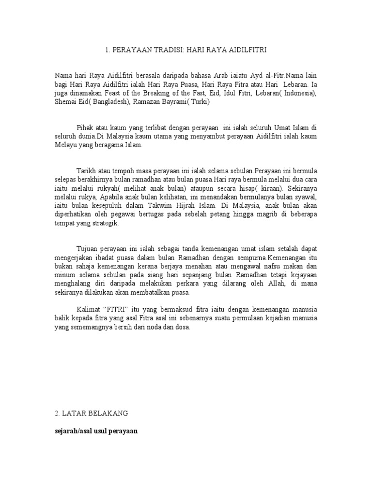 Kerja Kursus Sejarah Perayaan Hari Raya Aidilfitri