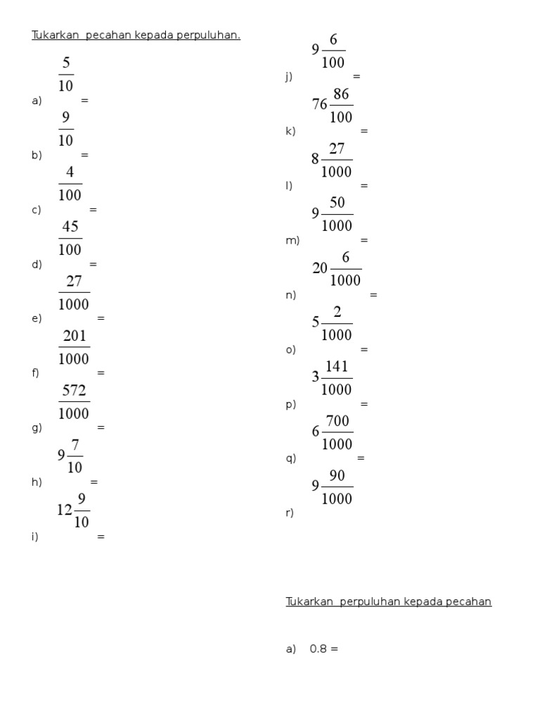 Tukar Perpuluhan Kepada Pecahan Tahun 5